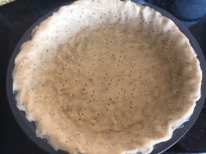 - Mix thoroughly all the wet ingredients in medium mixing bowl. Add the dry ingredients and mix until it forms a dough. There is no need to roll it out because you will press the dough directly into the 9'' pie pan.
