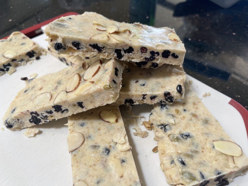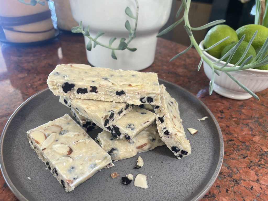This bar is naturally sweet with a delicious texture. I was able to use half as much sweetener. Yes this bar is higher on the carb/sugar side because of the blueberries of course. I'd say this is how you get a handful of your berries in a day. Your family and kids will love them. Enjoy!
