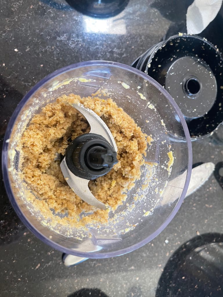- Add fresh peeled ginger to your Ninja and pulse until finely chopped. Next add walnuts to the ginger and pulse until walnuts are broken up.