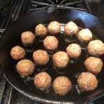 Combine the egg and the other liquid ingredients, mixing thoroughly before adding the dry ingredients. Add the beef and with your hands mix it up and begin to make balls, big or small it's up to you.