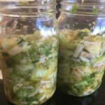 At this point your cabbage should be looking nice and soft, and you've got all the other tasty ingredients ready, so it's time to put it all together and transfer into mason jars to ferment!